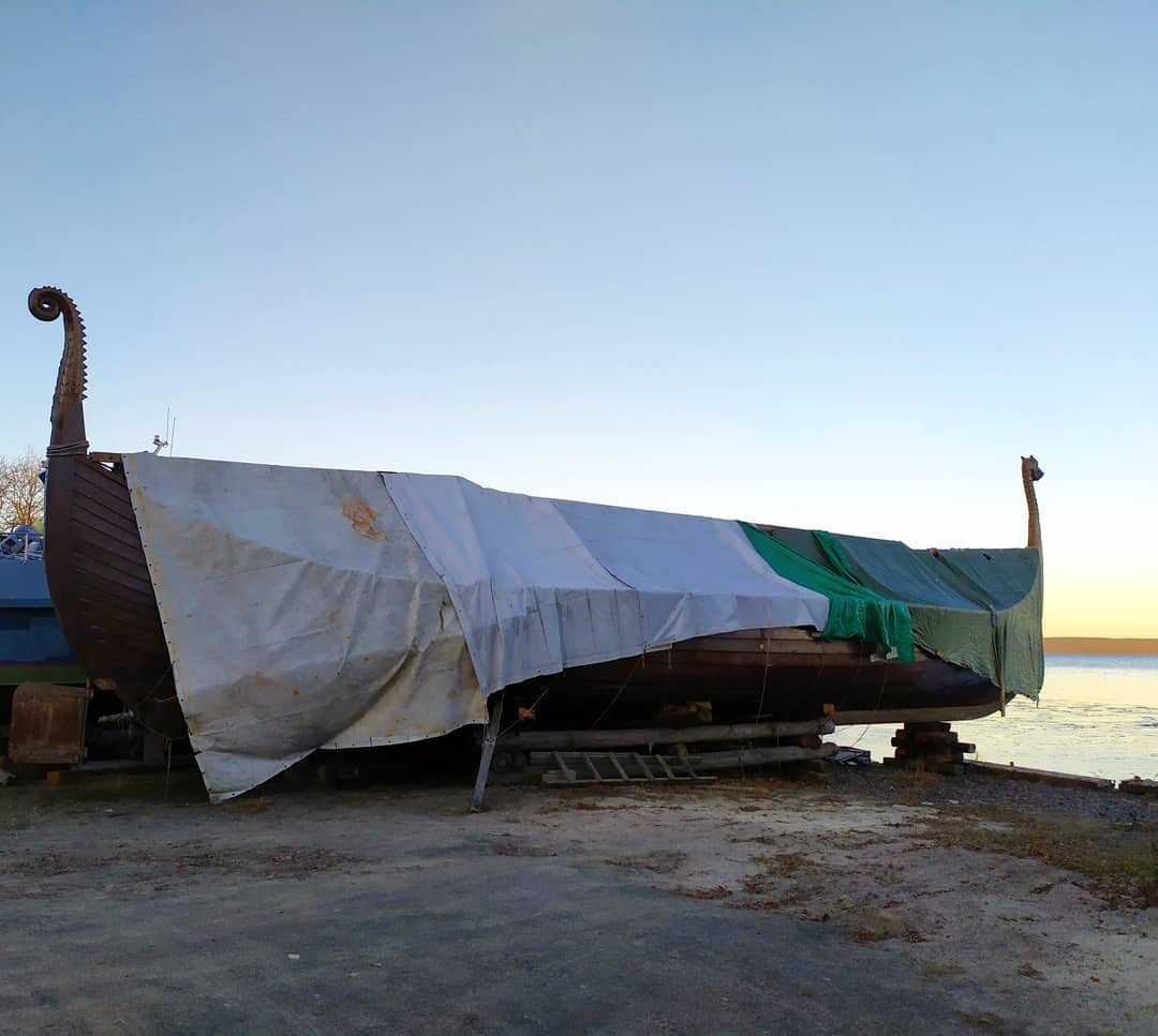 Мы конечно же решили, что надо обязательно посетить этот музей! Итак, планы наметились, мы вызвали такси и мчимся навстречу кораблям… Но мы забыли одну маленькую деталь – сейчас не лето 😳, а уже декабрь, зима как бы… Приближаясь к музею, мы увидели огромный дракар, накрытый тентом, и потихонечку начали подозревать, что музей сейчас не работает. Подойдя ко входу, наши опасения подтвердились – дверь была закрыта. Но на двери висела табличка с контактными телефонами, и мы позвонили. Нам сказали, что сегодня уже никого не будет, но если мы желаем экскурсию, то можно по предварительной договоренности условиться на завтра. Но на завтра у нас уже есть большие планы, так что с Полярным Одиссеем мы пока пролетаем 🤷♀️