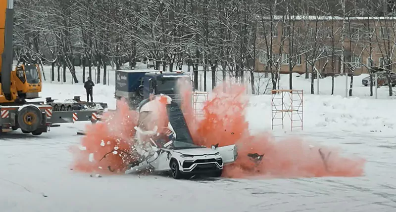 Михаил Литвин скинул бочку с энергетиком на Lamborghini Urus