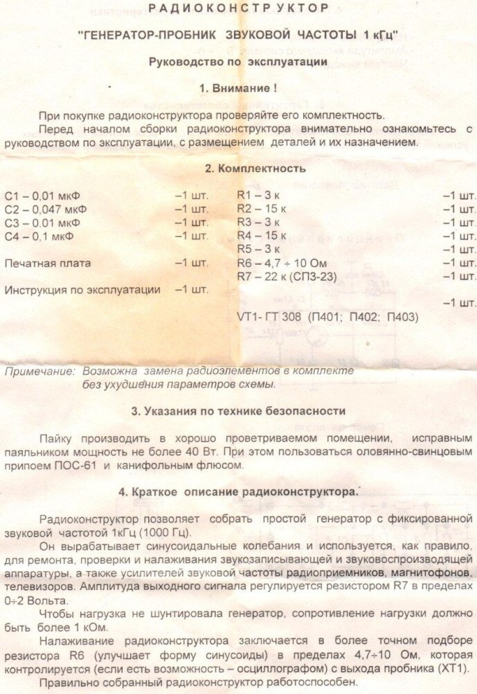 Собираем генератор ЗЧ на 1000 Гц по схеме из старого радиоконструктора