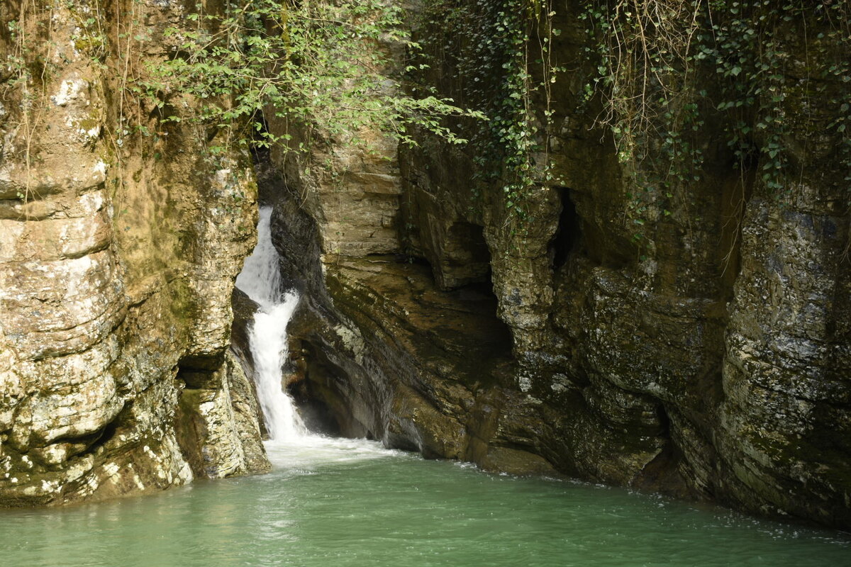 Экскурсия к Агурскому водопаду - одна из традиционных экскурсий, предлагаемых туристам в Сочинском регионе. И мы, конечно, уже там были пару раз. При этом я каждый раз удивлялась - зачем заманивать народ водопадом, когда его там нет? Идёшь в надежде увидеть водопад и видишь тоненькую струйку-слезинку, стекающую с горы. Так было летом. Но как-то прочитала, что весной водопад полноводный, потому что снег тает.