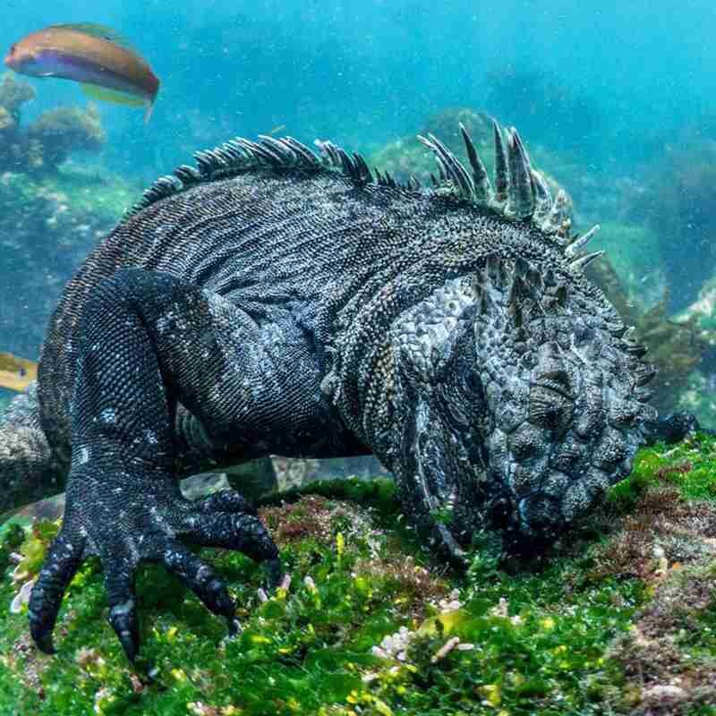 Сегодня я расскажу о существе , морском чудище или как её называют "Морская Игуана" вообще , когда я её увидел на просторах интернета то думал что она не настоящая , но потом прочитав несколько статей и увидев намного больше роликов понял что она существует😱 Небольшая предыстория:Согласно исследований ученых, этот вид отделился от сухопутных родственников от 4 до 10 миллионов лет назад. Они попали на Галапагосские острова совершенно случайно, и оказались отрезанными от внешнего мира. На островах в то время не было растительности, поэтому животным пришлось научиться пить морскую воду и нырять в океан за пропитанием. Как выглядит Морская Игуана:Морда слегка приплюснутая, и на челюсти расположены острые трехгранные зубы. Туловище толстое. Ноги короткие и крепкие. На каждой конечности есть по пять пальцев. Когти изогнутые и цепкие.Они позволяют животному карабкаться на высокие скалы. Вдоль спины и до хвоста тянется гребень из ороговевших чешуек. Хвост длинный, плоский, помогает животному