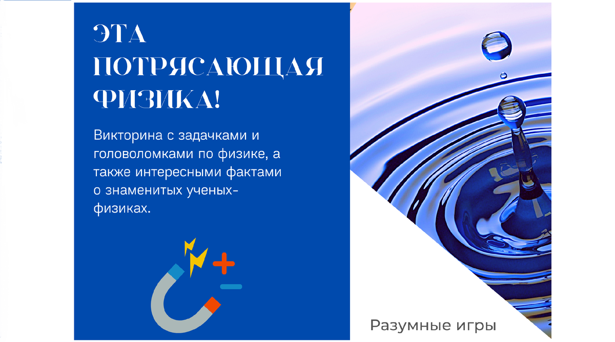 Предлагаем Вам сыграть в очень интересную и познавательную викторину по физике. Кликайте на ссылочку и играйте с удовольствием!