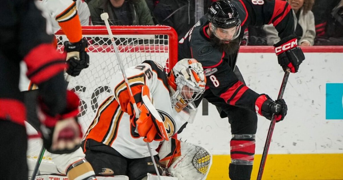 «Анахайм» обыграл «Каролину» (3:2) при 15 бросках против 53. Это 3-й матч Гибсона с 50+ сэйвами в феврале