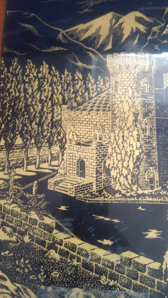 Итак, висит у меня в апартаментах вот такая картина. Европейский пейзаж, архитектура нужная. Что у меня есть ещё? Есть предыдущий заказ - сделать лоу-поли собаку. Заказчик отказался от того, чтобы работу оплачивать, с тех пор это лежит в библиотеке моделей. Думаю, что место этим металлическим (предположительно) животным - на входной группе какого-то либо не бедного помещения. Делаем!