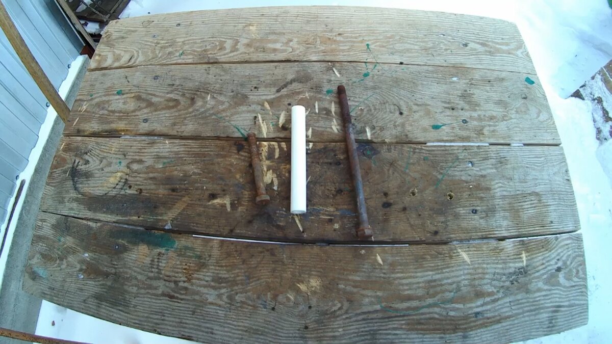 Доброго времени суток, дорогие мои читатели! В своей сегодняшней статье я хочу поделится с вами очередной простой самоделкой. Так же подробно покажу все процессы изготовления этой самоделки. Для начала необходимо приготовить нужные нам заготовки. А именно: два болта на 12 мм разной длинны, плоская шайба и кусок полипропиленовой трубы 25. Далее сразу берем болгарку и укорачиваем один болт, так как он оказался слишком длинный и отрезаем шляпку у второго болта, она нам не понадобится. После того как все отрезали, берем нашу трубу и примеряем на длинный болт. Труба оказалась не много длинней, чем нам потребуется. Так как ножниц под рукой не оказалось трубу отрежем с помощью болгарки. Готовую трубу снова одеваем на болт, берем плоскую шайбу и тоже одеваем на болт. Далее берем второй болт и с помощью болгарки его зачищаем. Один конец болта затачиваем под конус, а второй конец затачиваем как зубило. Теперь когда все детали готовы берем сварку и начинаем сборку. Сначала приварим шайбу к бол