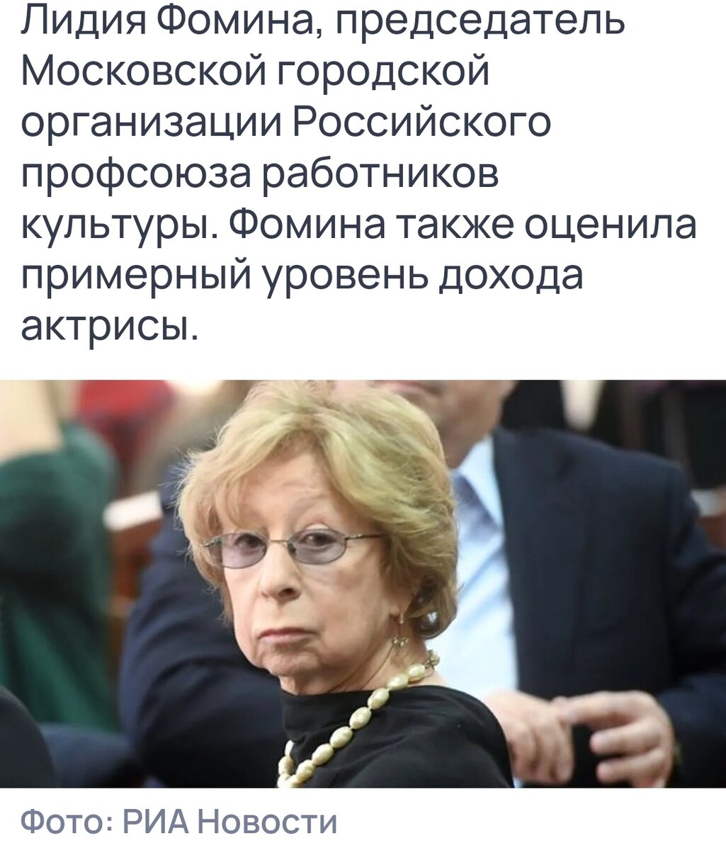 Выясняется, что Лию Меджидовну никто не увольнял. Просто сняли старый спектакль. Не из-за неё. Но раздули историю. Директору пришлось опровержение писать. Зато выяснилось пикантное. 90 летняя старушкО спокойно числится в труппе и получает отличную зряплату.