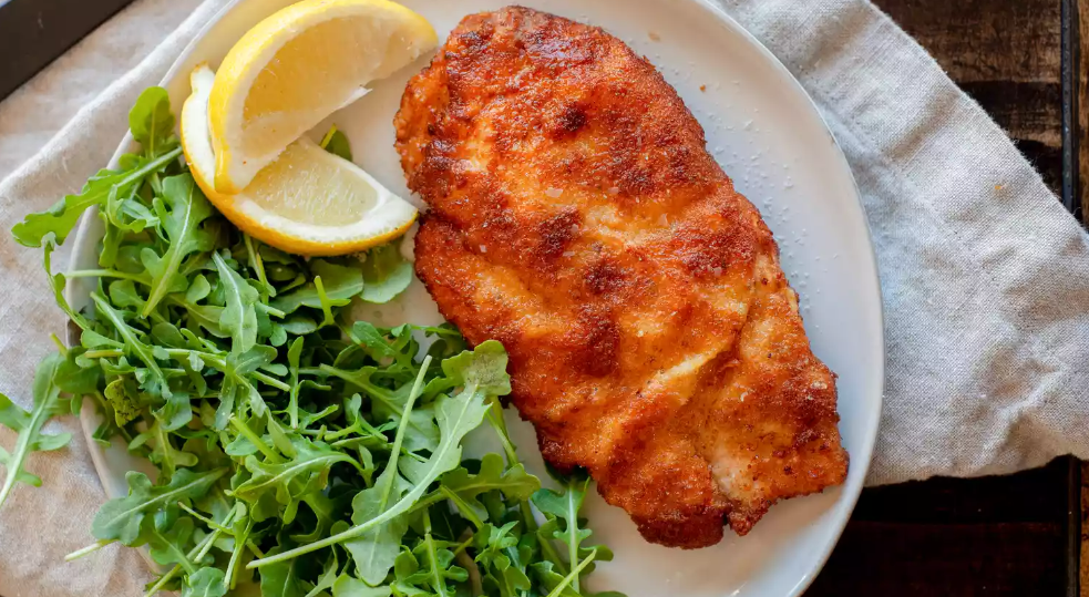 Подайте этот идеально обжаренный куриный шницель с вашим любимым гарниром на ужин и вы будете править вечером! Шницель происходит от немецкого слова «ломтик», обозначающего тонко нарезанное мясо, обваленное в панировочных сухарях и обжаренное. Во всем мире есть культуры, которые готовят блюда аналогичным образом — например, эскалоп во Франции, миланеса в некоторых частях Южной Америки, курица по-милански в Италии, кацу в Японии и многие другие. Для сравнения, шницель имеет тенденцию быть более тонким, чем другие виды отбивных. Кроме того, панировка у него очень вкусная. В результате получается легкая тонкая корочка, которая вздувается при жарке, создавая характерный вид, напоминающий холмистую местность, а мясо внутри остается сочным и нежным. Ингредиенты: Способ приготовления: 1. Поставьте 4 больших неглубоких миски рядом друг с другом. Выложите муку в крайнюю миску. Добавьте яйца и горчицу во вторую миску. Взбейте вилкой до объединения. Добавьте панировочные сухари в третью миску. О