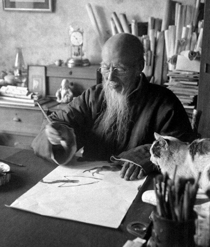 Ци Байши (齐白石, 1864 — 1957) — величайший китайский художник, каллиграф и мастер резьбы по камню. Один из самых известных современных мастеров Китая. Он работал в таких жанрах как "цветы и птицы" (хуаняо), "насекомые и рыбы" (чунъюй), "пейзаж" (шаньшуй, «горы и воды»), "изображение людей и предметов" (жэньу). Но больше всего Ци Байши известен своими знаменитыми креветками. Ведь именно здесь он достиг вершины мастерства. Я рисую креветок уже несколько десятков лет, и, кажется, только сейчас начинаю немного постигать их характер. ⚬ Ци Байши Интересно то, что художник пристрастился рисовать живую природу в более преклонном возрасте, ближе к 60-ти. И всё же самой дорогой его работой стала не работа с креветками, а "Двенадцать пейзажных сцен", проданных на аукционе за 931,5 млн. юаней! Ци Байши изображал самых обычных мелких речных креветок. Когда у него спросили, как ему удается с такой точностью передавать все детали строения креветки, он ответил так: «Я рисую каждый день. Нельзя пропу