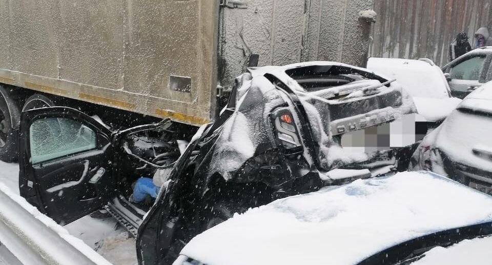 Количество автомобилей, попавших в массовую аварию на федеральной трассе М-11 под Новгородом возросло до 41. Об этом сообщили в Telegram-канале регионального управления ГИБДД.