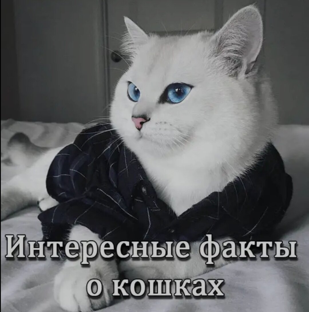 В этом статьи я вам расскажу несколько интересных фактов о кошках.🐈🐈🐈🐈 Кошки обладают лечебными способностями. В народной медицине даже есть специальная фелинотерапия – метод профилактики и лечения различных заболеваний при помощи контактов с кошками. 2. Считается, что у владельцев кошек на 30% снижается вероятность инфаркта или инсульта. 3. Если кошка находится возле вас и ее хвост дрожит – это наивысшая степень любви, которую она может выразить. 4. Если кошка принесла вам добычу, например мышь, то так она проявляет заботу о вас и хочет вас накормить. Тут важно не ругать кошку за «подарок», а похвалить. 5. Кошки подвергались инквизиции. Папа Иннокентий VIII считал их проводниками между ведьмами и силами зла. Истребив кошек в Европе, люди получили нашествие крыс и эпидемию чумы. 6. Кошки являются единственными животными, которым разрешено входить в мечеть. 7. Кошка может прыгать на высоту, в 5 раз превышающую ее рост. 8. Кошки отлично видят в условиях слабого освещения,