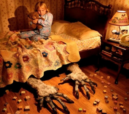 Но как только он убрал последний пучок, то увидел самое страшное, что ему приходилось видеть в своей жизни. На него смотрело морда с клыками и высунутым длинным языком как у змеи, глаза были странного желтого цвета и когда открылись полностью начали светиться ярче, чем луч фонаря. Мужчина онемел от ужаса и хотел было рвануть назад, но восемь длинных рук, похожих на лапы гигантского тарантула крепко держали свою жертву. Чудовище открыло рот, и незнакомец услышал шипящий тихий голос: