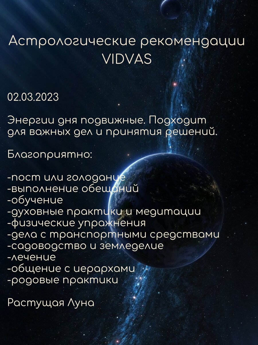 Астрологические рекомендации VIDVAS на 2 марта 2023