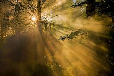 От того, что распространяющийся свет проявляет своё присутствие только в одном случае: при наличии предмета, вещественного тела, способного отражать свет и посылать нам «лучи» света. Мы никогда не видели бы луча света, исходящего из дырки в оконной занавеске, или из «дырок» в кроне деревьев, если бы не частички пыли, искрящиеся отражённым светом. Именно они, искрясь в своём танце, оконтуривают границы луча.