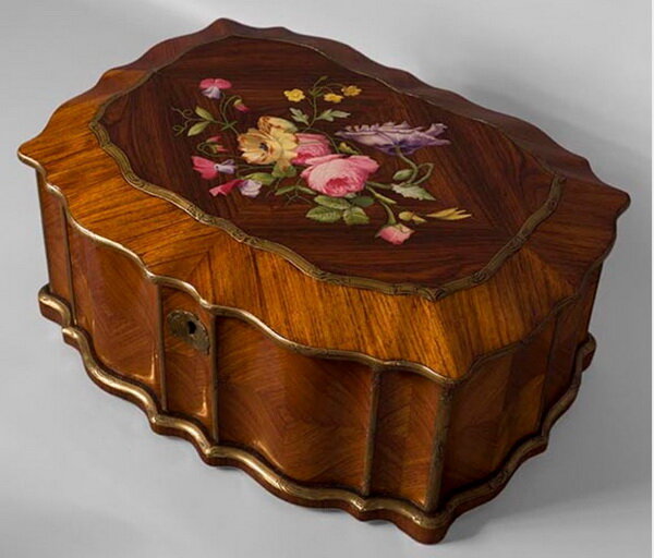 Шкатулка для драгоценностей, украшенная фарфоровым маркетри работы Жюльена-Николя Ривара.