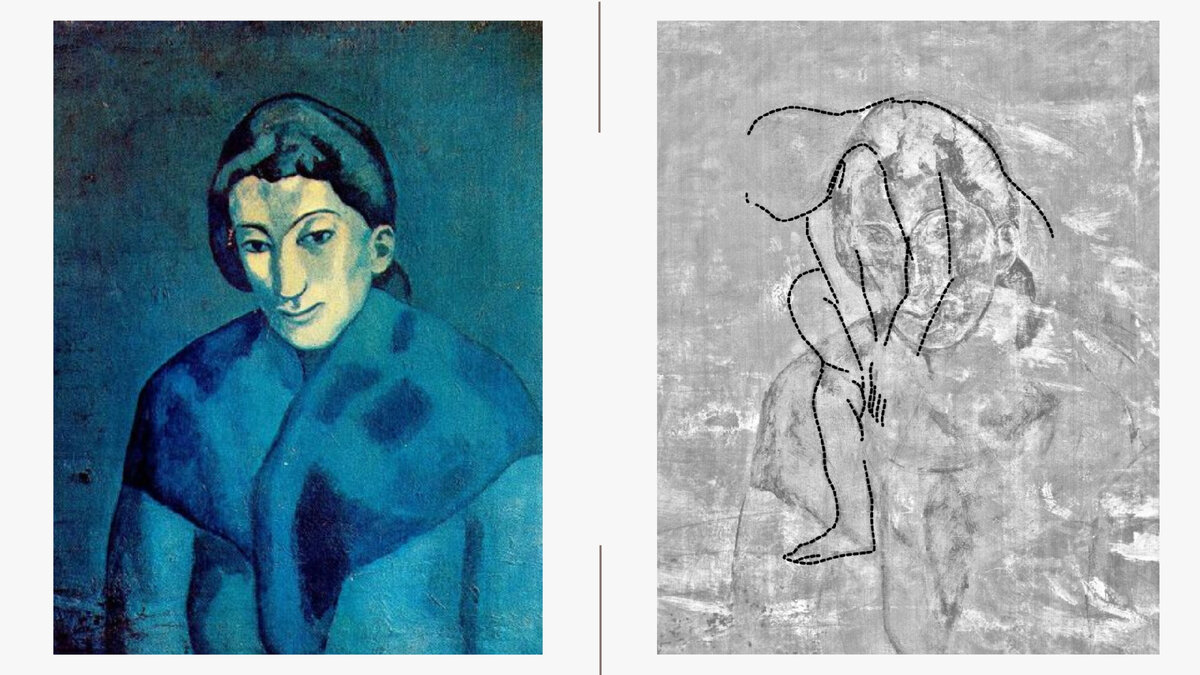 Специалисты из Художественного музея японской префектуры Аити совместно с коллегами из США обнаружили под красочным слоем картины Пабло Пикассо "Женщина в шали" набросок другой работы художника. Они изучили холст при помощи гиперспектральной камеры, которая может улавливать свет, разделяя его на волны разной длины.