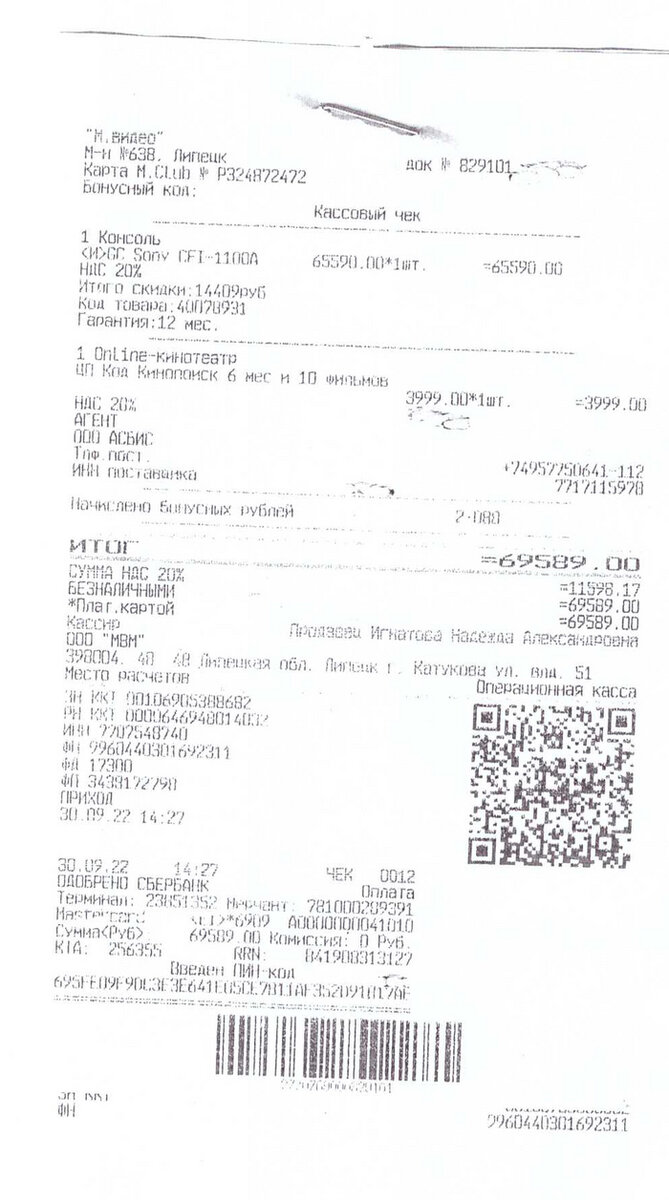 Детская мечта, консоль, да и еще нового поколения, решил сменить PS4 уже старенькую, на PS5, не особо я играю, но иногда очень хочется. Покупка была обдуманная, и из выбора на Авито, заказа через Турцию, или официально купить в магазине, однозначно решил купить в магазине "М-видео", т.к. есть гарантия, да и всю технику беру там, не было ни одного повода сомневаться. Да есть переплата, но за гарантию, было не жалко. И вот 30.09.2022г. я приехал в один из крупных магазинов "М-Видео" г.Липецка, в ТЦ Ривьера, там она была в наличии, был рад как слон, продавец сделал скидку,впарил" подписку на онлайн-кинотеатр, да не жалко, лишь бы уже отдали и я поехал ее включать. Пробили, посмотрел в чеке, гарантия есть, суммы сходятся, названия есть..никто не знал, что дальше будет грустно. Поиграв почти месяц всего где часа 3-4 в совокупности, закупив всякие штуки для консоли, беспроводная зарядка, чехол для геймпада, не сразу стал замечать, что иногда игры вылетают и всегда с ошибкой CE-108255-1, я ду