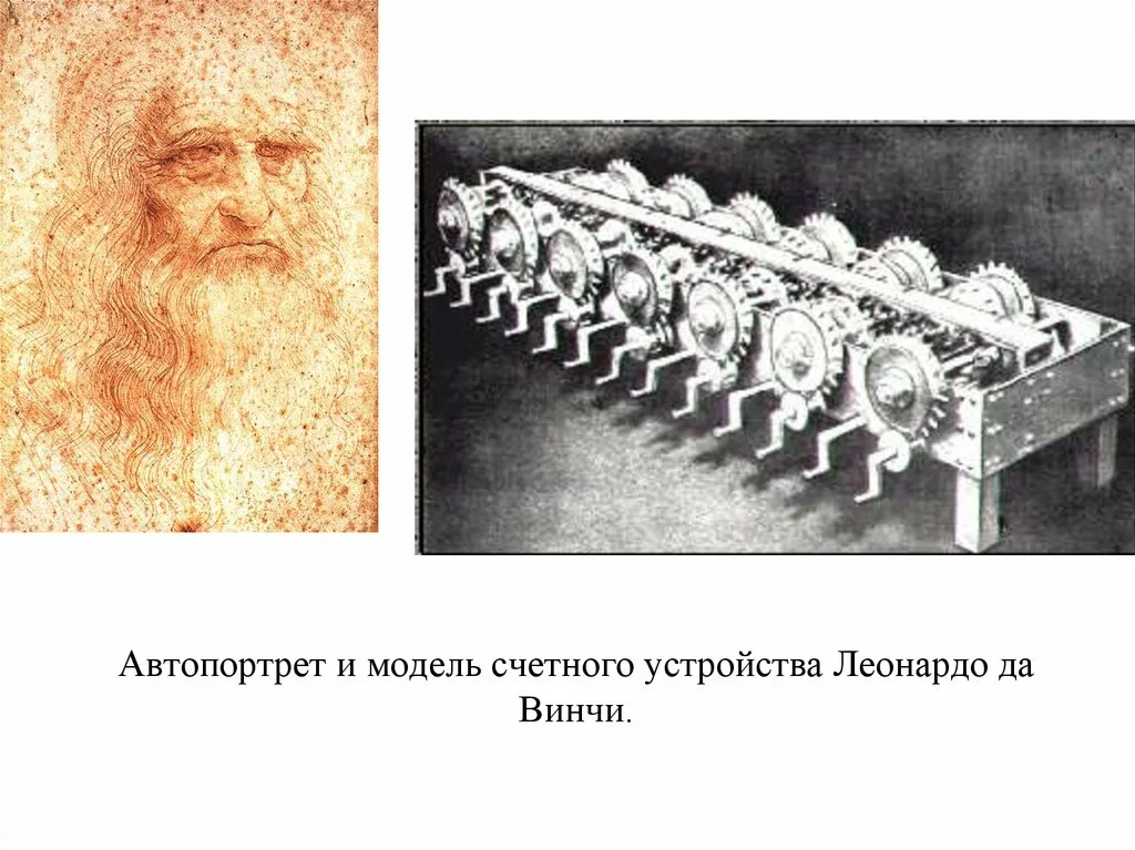 История механических этапов развития компьютерной техники начинается с 1492 г., когда в 1452-1519 годах. Леонардо Да Винчи разработал схему счетного агрегата и описывал его в дневнике, сегодня известном как двадцатитомник «Мадридского кодекса». Эти дневники долгое время оставались безызвестными в национальной библиотеке Испании до 13 февраля 1968 года, пока американские исследователи не нашли их. Среди рисунков первого т. Мадридского Кодекса, практически полностью относящегося к прикладной физике, исследователи нашли эскиз устройства 13-разрядной суммирования с десятидюймовым кольцом. Основой счетной машины являлись стержни, имевшие два зубчатых колеса, большие - на одной стороне, а маленькие - на другой. Как мы видим на эскизе Леонардо Да Винчи, стержни были расположены таким образом, чтобы небольшое колесо одного стержня входило в сцепление большого колеса соседнего стержня. Именно поэтому десять вращений первого ствола привели к одном полному вращению второго ствола, десять вращений