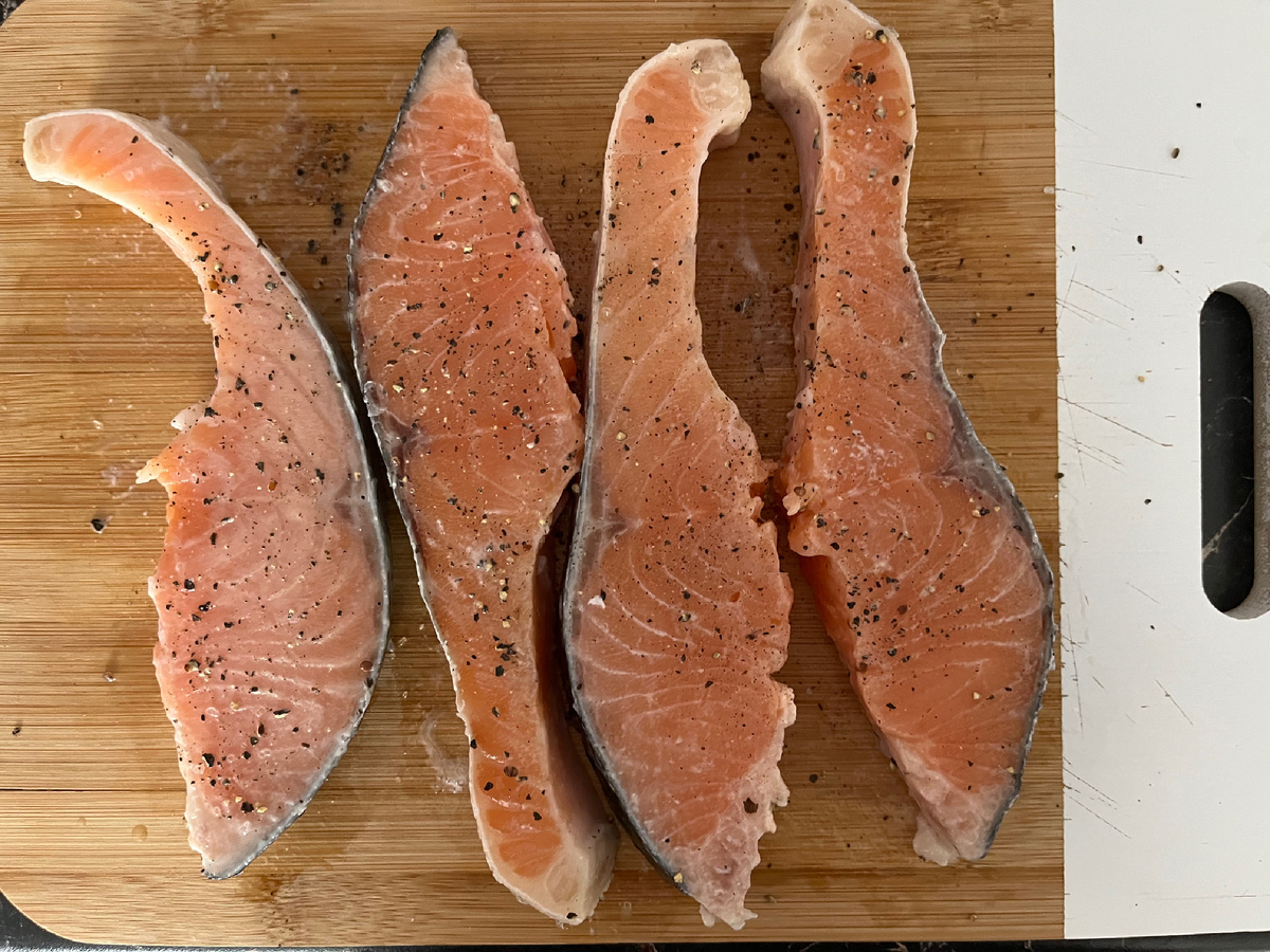 Ингредиенты Стейки разрезайте на пополам, солим, перчим с двух сторон. Обматываем пищевой пленкой или убираем в мешочек, затем отправляем в холодильник на 20-30мин После того, как все промариновалось, отправляем на сковороду и обжариваем на сливочном масле до полугостовности и перекладываем на тарелочку В масле из под рыбы мы обжариваем лук и чеснок до золистой корочки Затем добавляем сливки, рыбу, помидоры и специи, тушим минут 10 на слабом огне Наши нежные стейки готовы Приятного аппетита🍽️