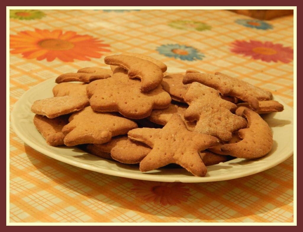 Приготовить 2 стакана муки, по 100 гр сахара и сметаны, 50 гр сливочного масла, 1 яйцо, 1 столовая ложка меда, по пол чайной ложки сахара и корицы. Сахар растереть с яйцом, добавить размягченное сливочное масло, сметану и мёд. Муку смешать с содой и солью и постепенно добавить в основную массу. Сформировать печенье фигурками и посыпать корицей. Выпекать 15-20 минут. Приятного чаепития!