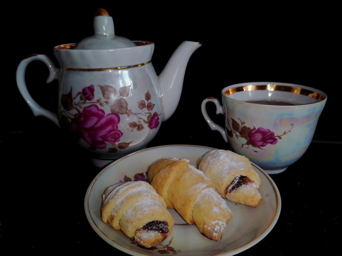 Всем привет. Сегодня мы будем готовить очень простые рогалики с начинкой. Делаются они достаточно быстро. Всегда получаются мягкими и нежными. Даже большой тарелки надолго не хватает. Вся семья просит добавки. И так, давайте готовить. Для теста: Мука 350гр.; Масло сливочное или маргарин 220гр. ; Сметана 200гр. ; Сахар 60гр. ; Разрыхлитель 13гр. ; Ванилин 1 ч.л. ; Соль щепотка ; Для начинки : Любые фрукты, ягоды или джем, повидло. 1. Первым делом просеиваем в миску сразу всю муку, разрыхлитель и ванилин. 2. Далее берём холодное сливочное масло. Оно должно быть только из холодильника. Для удобства я его порезала на небольшие кубики. Перекладываем и быстро перетираем с мукой в мелкую крошку. 3. Отдельно смешиваем сметану с сахаром, чтобы тот полностью растворился. 4. В небольшое углубление по центру нашей заготовки выкладываем сметану. 5. Сначала слегка перемешиваем тесто ложкой. Затем присыпаем его мукой. Буквально грамм 20 - 30 и замешиваем руками. 6. Тесто получается плотное