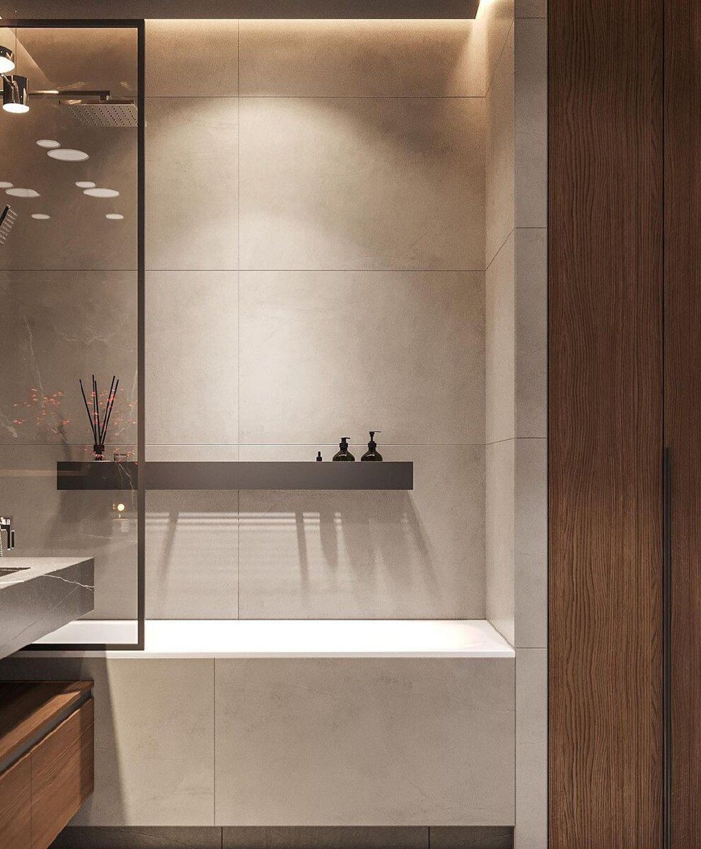 Общую комнату разделили на полноценную спальню и гостиную зону. На небольшой кухне уместили обеденный стол и барную зону у окна. Предусмотрели места, где можно поработать за ноутбуком. Продумали бытовое хранение и хранение одежды