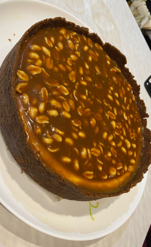 Для карамели сахар выложить в сотейник с толстым дном и дать растопиться не перемешивая.Далее добавить масло и ГОРЯЧИЕ сливки,перемешать и прогреть пару минут.В карамель добавить арахи