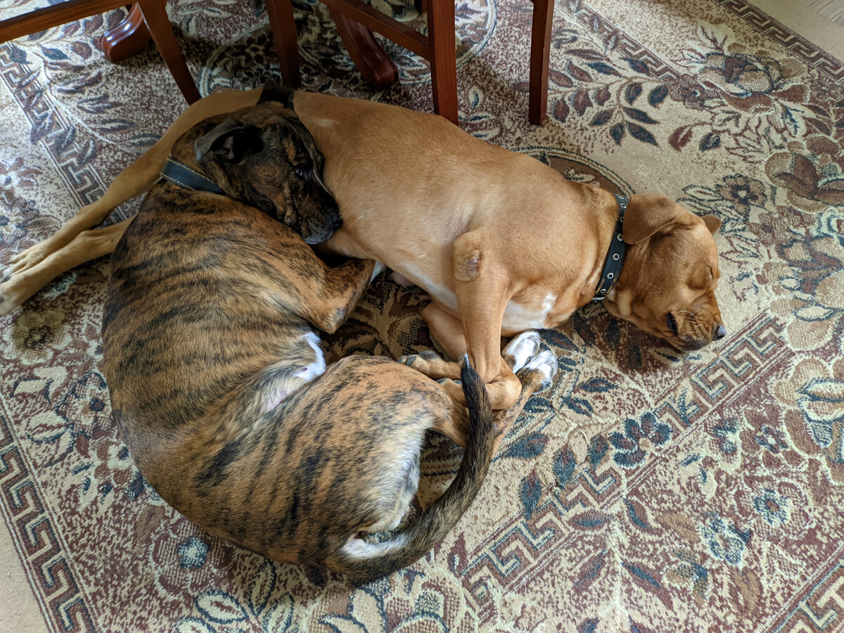 Наши набегались с утра и спокойно отдыхали на кухне, ожидая ароматы нашего завтрака.