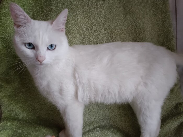 Малыша нашедшая взяла на первое время к себе, но долго держать она его не сможет - должна будет уехать. Срочно ищем дом Зефиру, белоснежному котёнку с небесно-голубыми глазами - он неимоверно ласковый и ручной, ему не больше полугода. Малыш однозначно бывшедомашний - сразу пошёл в лоток.