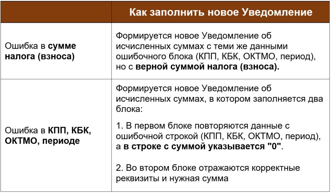 Порядок заполнения такого Уведомления зависит от того, в каком именно реквизите допущена ошибка:
