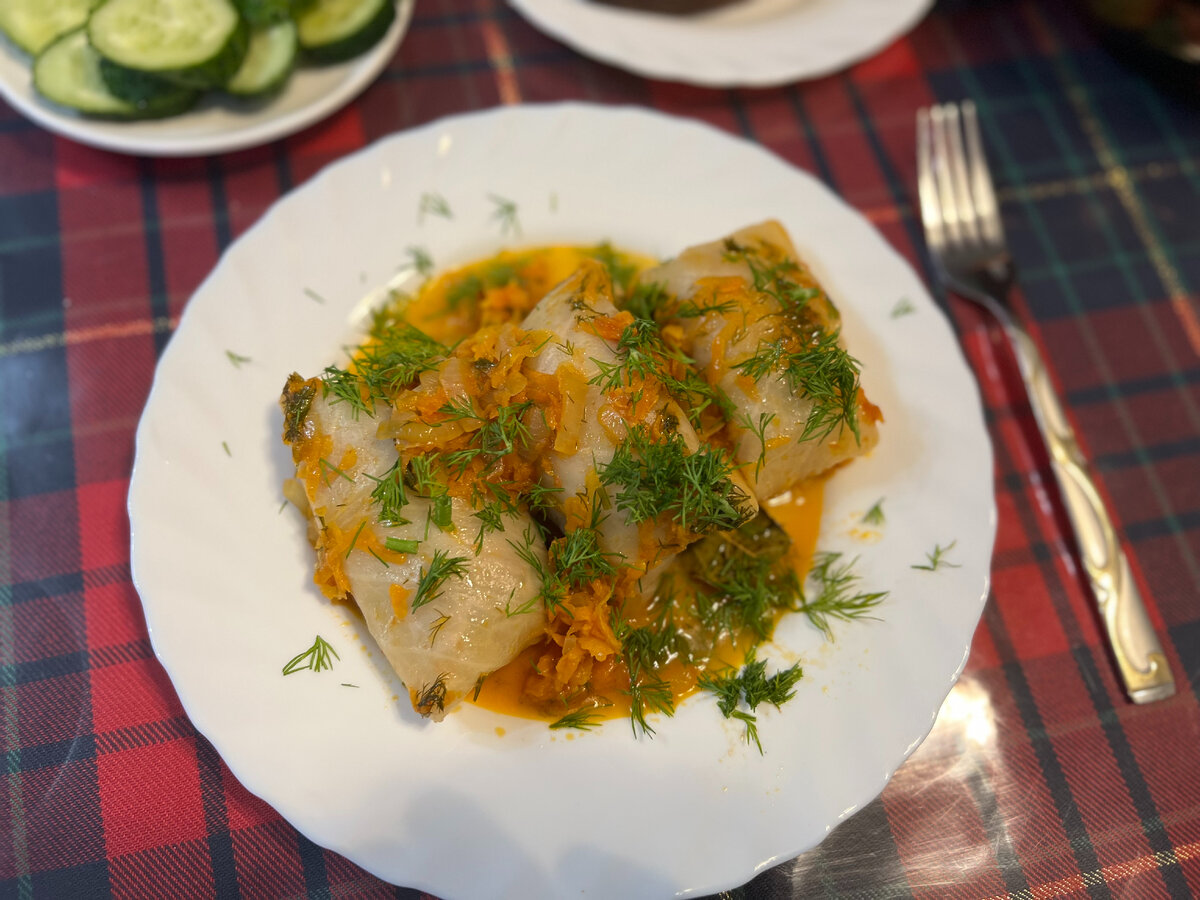Классические голубцы с мясом и рисом — любимое многими блюдо. Сочетание сочного фарша, мягких капустных листьев и насыщенного томатного соуса — очень вкусно и сытно! Ингредиенты: Для соуса: 1. Удаляем с капусты верхние поврежденные листочки. Далее вокруг кочерыжки делаем глубокие надрезы ножом, чтобы отделить основание листьев от кочана. Выбираем большую кастрюлю (в идеале капуста должна помещаться туда полностью), наполняем водой. Кочан насаживаем на нож или вилку, погружаем в закипевшую подсоленную жидкость. Постепенно капустные листья начнут отделяться от кочана (аккуратно помогаем им с помощью вилки). Когда в кастрюле окажутся 3-5 листочков, извлекаем кочан из кастрюли. Отделившиеся листья варим 1-2 минуты (до мягкости и эластичности), затем достаем с помощью шумовки. Далее снова помещаем кочан в кастрюлю, дожидаемся отделения листочков и т.д. Повторяем процедуру, пока не закончатся все подходящие листья. Начинка для голубцов