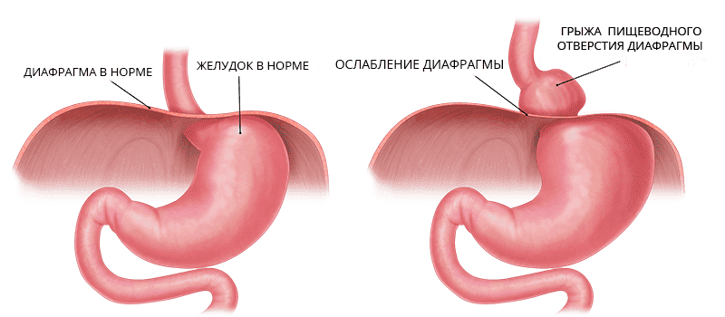 Возникновение, симптомы грыжи пищеводного отверстия диафрагмы