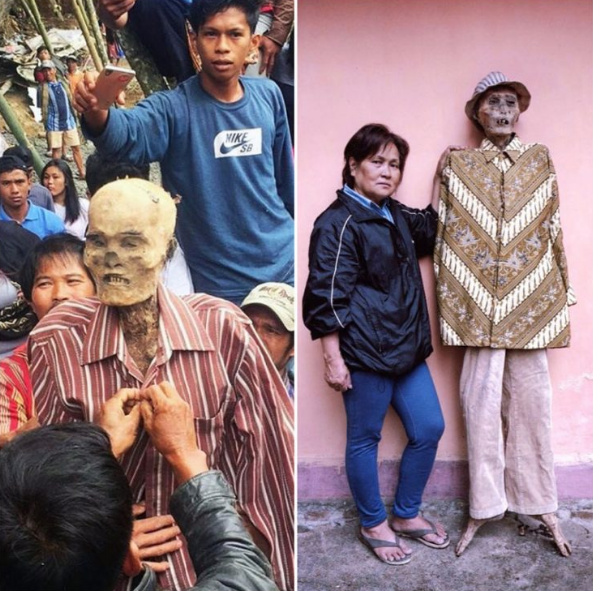Каждые три года жители острова Сулавеси в Индонезии выкапывают своих мертвых родственников, чтобы переодеть их в новую красивую одежду. А также почему островитяне боятся покидать собственный дом. Всем по обновкам! Живые родственники раз в три года в рамках фестиваля Манене откапывают свою мертвую родню и переодевают в красивую, не истлевшую одежду. В переводе Манене означает «Церемония очистки трупов». А как потом не похвастаться обновкой? Потому потом все устраивают парад в деревне со своими принаряженными мертвыми родственниками, радостно фотографируются. Тех.сервис гроба Гробы, в которых лежал усопший, тоже проверяют и чинят. Если совсем уже износился, то покупают новый. Если семья большая и чтит предков, то и гробов может придется покупать немало. Иногда приходится одалживать или откладывать повторное погребение, пока денег на гроб не достанут. Сами похороны в радость Непосредственно похороны умершего на Сулавеси тоже проходят нестандартно. Тораджи относятся к племенам, где принято