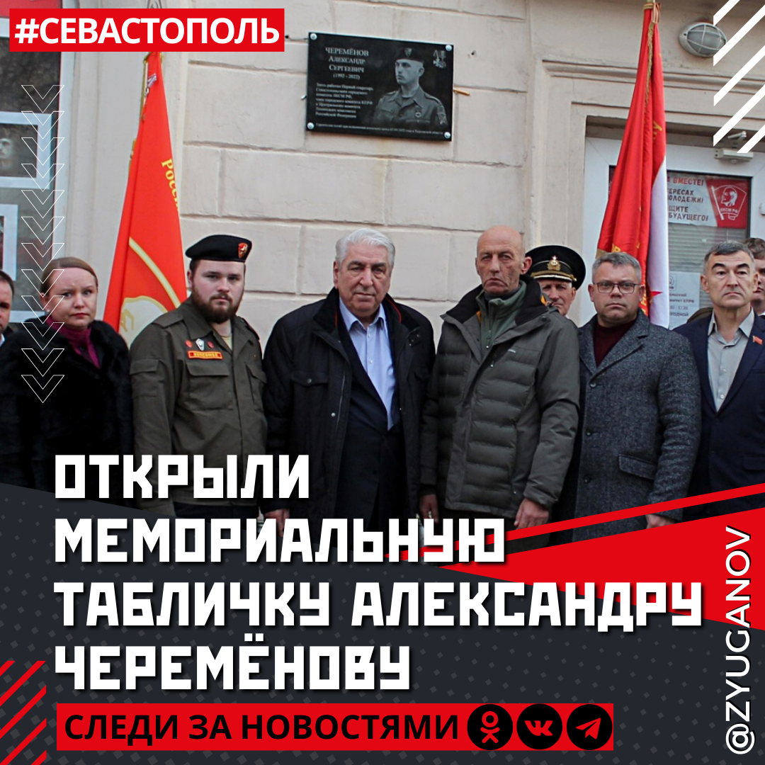 В Севастополе открыли мемориальную табличку, посвящённую Александру Сергеевичу Черемёнову - первому секретарю Севастопольского горкома комсомола (2013-2022 гг.), члену Центрального Комитета ЛКСМ РФ, члену городского комитета КПРФ, героически погибшего в борьбе с фашизмом на территории Херсонской области 2 сентября 2022 года. Александр награждён Орденом Мужества и знаком ЦК ЛКСМ РФ "Комсомольская доблесть" (посмертно).