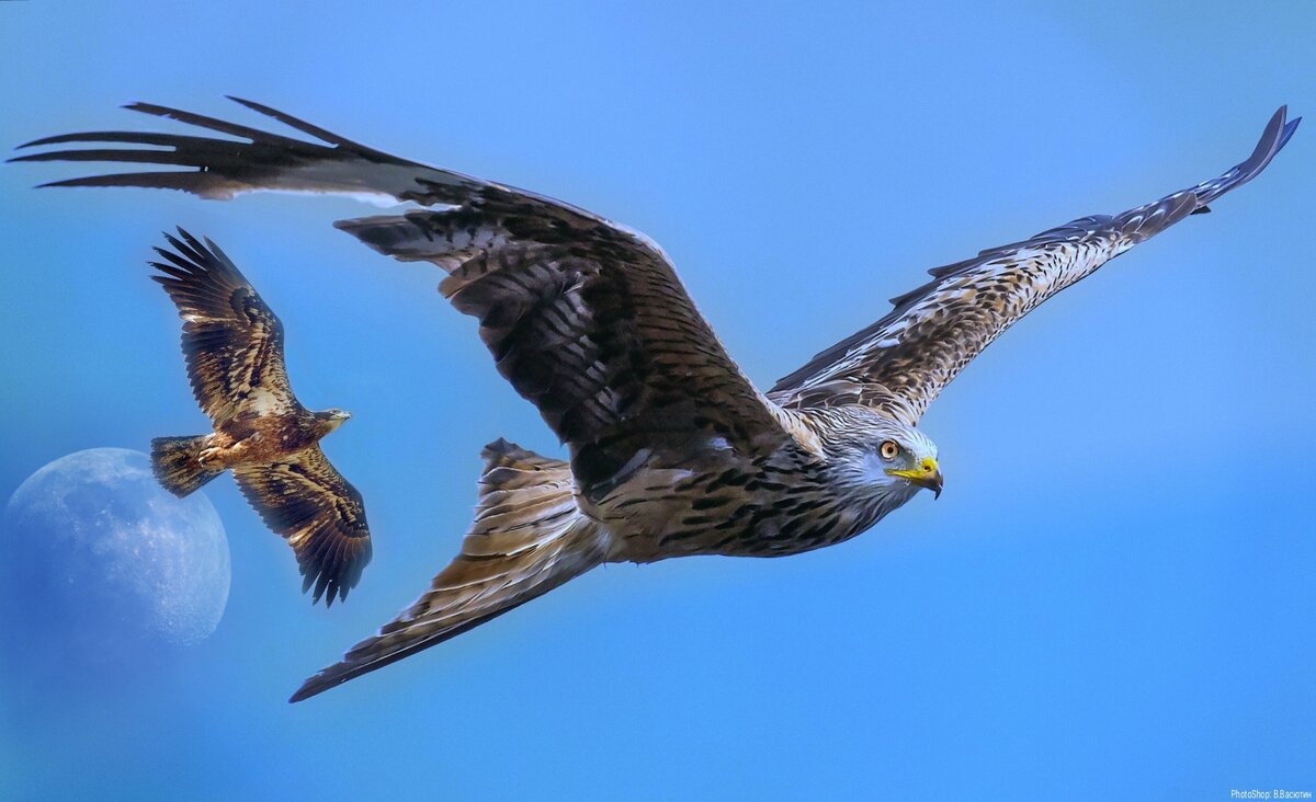 Два сокола ясных жили на свете, Не сыщешь дружней ты на целой планете! Их крылья что ветер и глаз, что алмаз, О братьях двух соколах - этот рассказ. Весь мир покорили и все небеса - Сильных и ловких четыре крыла! Друг друга держались, всегда были вместе И вместе добычу делили по чести, Их сердцем был ветер! А небом их дом, И Землю они облетели кругом. Молва все шла (то был секрет), Что обогнали даже свет! ............... Была одна у них забота- Соколинная охота! Знали все свои леса, Покорили небеса! Но в один ненастный день На удачу пала тень... Лес в тумане, будто смолк, Приц игривый дивный полк Вдруг как будто растворился. И ни зверя нет ни птицы. Небо хмуро, над полями, Над широкими морями- Даже ветер будто сгинул И охотников покинул. ................. И добычи нет как нет! Вот уж близится рассвет, И пора лететь домой, Без трофея в край родной. Вдруг один из них глядит У моря, там где дуб стоит- Целый стол и пир богатств, Соколинных лучших яств! Туда тихонько подобрались Да в сети