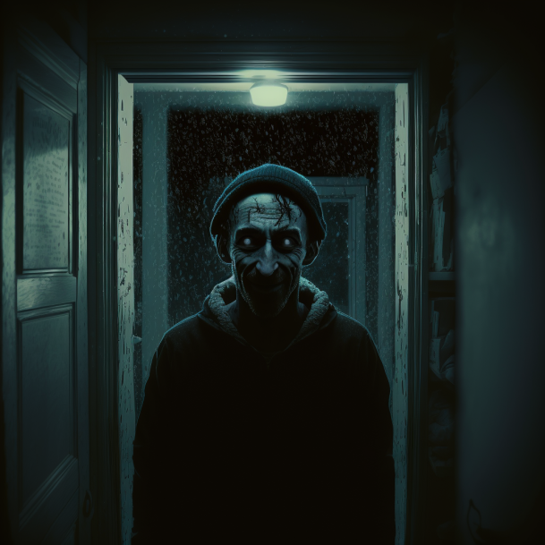 Однажды ночью, когда Миранда была одна дома, она услышала звонок в дверь. Взглянув на часы, она увидела, что уже полночь, и она не ожидала никого. Приблизившись к двери, она услышала шелест за ней. Она немного постояла, чтобы понять, что это было, но не услышала ничего больше. Тогда она решила заглянуть в глазок, чтобы увидеть, кто пришел. Она увидела мужчину в черной куртке, который стоял спиной к двери. Миранда не узнала его, и это заставило ее испугаться. Она подумала, что это мог быть какой-то незнакомец, который хотел проникнуть в ее дом. Она начала задавать вопросы через дверь, но мужчина не отвечал. В конце концов, он повернулся к двери, и она увидела его лицо. Это был мужчина с черными глазами и искаженной улыбкой. Миранда испугалась до смерти. Она убедилась, что все двери и окна в доме были закрыты, а затем побежала в свою спальню и заблокировала дверь. Когда она наконец смогла успокоиться и позвонить в полицию, она узнала, что подобные случаи происходили в районе. Мужчина в ч