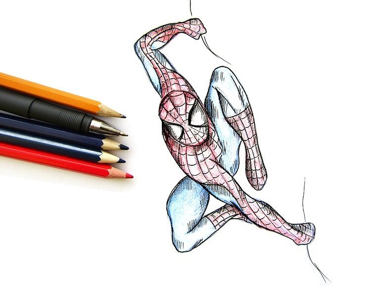 Простые поделки с детьми. Как нарисовать Человека-паука цветными карандашами