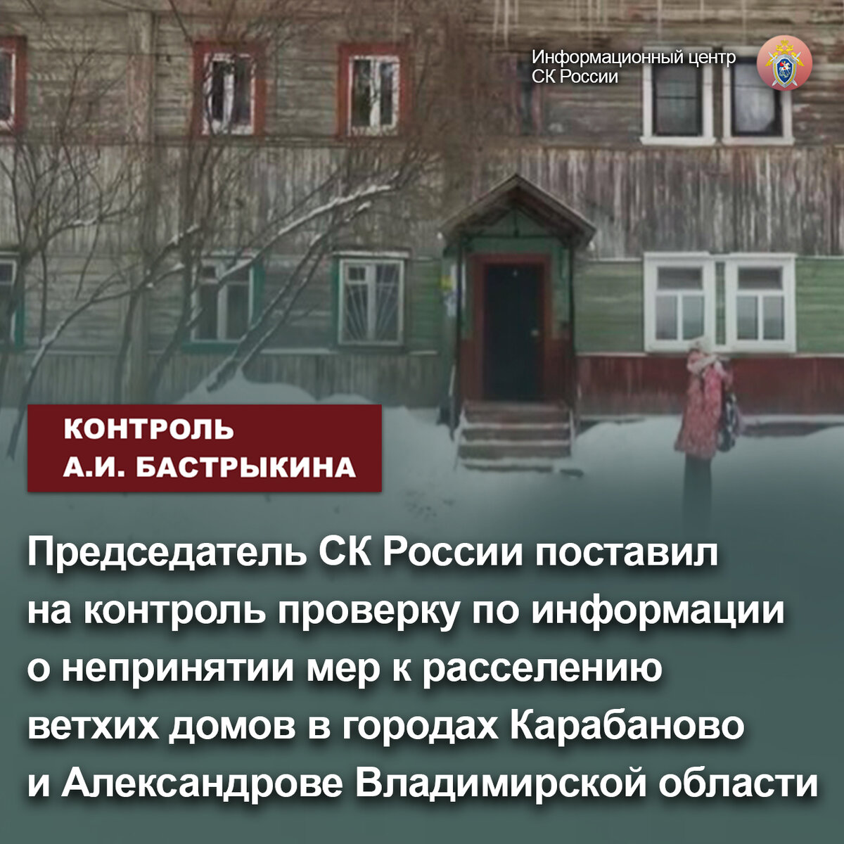 Председатель СК России поставил на контроль проверку по информации о непринятии мер к расселению ветхих домов в городах Карабаново и Александрове Владимирской области