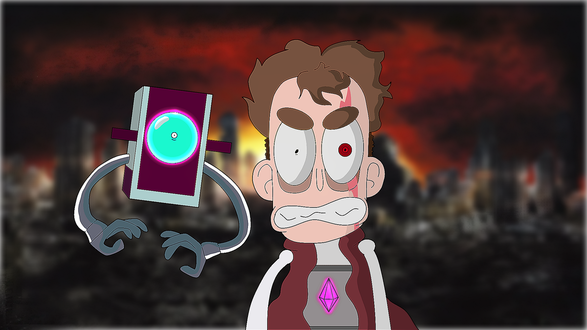 Оба переглядываются, после чего Боб хватает флэшку и кладёт в карман, после чего они незамедлительно убегают в другую вселенную.