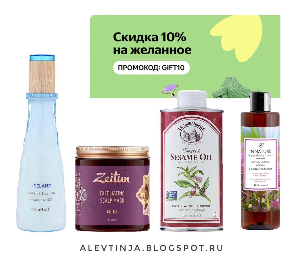 Всем привет! На любимом маркетплейсе появился промокод GIFT10, дающий скидку 10% на заказы от 5000 рублей из этой подборки. Но даже если вы не планируете заказывать на такую сумму, цены на некоторые позиции и так очень привлекательные (на момент написания поста, успевайте, цены могут измениться). Я собрала интересные товары. На фото: Ультраувлажняющая эмульсия на основе ледниковой минеральной воды из Исландии, а также экстрактов исландского мха, морских водорослей и арктических ягод интенсивно увлажняет кожу, наполняя её питательной влагой. Подходит для всех типов кожи. Летом можно будет использовать вместо крема. Большой объём и очень приятная цена. Детокс-скраб Zeitun для кожи головы удаляет токсичные загрязнения, пыль, остатки укладочных средств и излишки выделяемого кожей головы себума. Как я рада, что масла Ля Туранжель можно купить не только на айхерб, но и на ЯМ. Я перепробовала практически все варианты, о кунжутном сравнительно недавно писала отзыв. Прочитать его можно ЗД