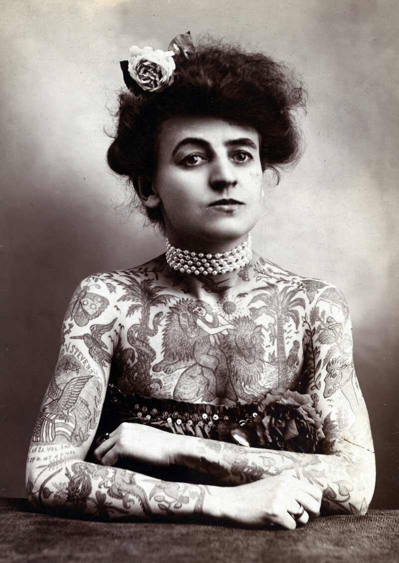 "За наколочку ответь!" Неоднозначные портреты женщин прошлого с татуировками по всему телу