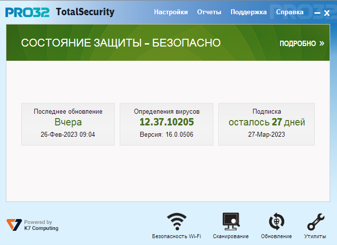 2 часть тут 3 часть тут 4 часть тут Никому ничего никому не навязываю, это мое личное мнение и оценочное суждение. Компания PRO32 пытается занять нишу ушедшего из России ESET. В данном случае используется наработанная база клиентов, но чувствую, прожевать такой объем товарищи не смогут. Сначала пришло сообщение от НОД, что данный антивирус уходит рынка РФ после февраля 2022 г. Спустя несколько месяцев пришло письмо, что теперь взамен НОД будет PRO! Итак, PRO32 построен на движке K7 индийского производителя K7 Computing. При запуске браузера выползает предложение установить K7 WebProtection. Как пишут разработчики - данное расширение K7 WebProtection помогает вам обеспечить безопасный просмотр и защищает вас от вредоносных веб-сайтов, которые могут поставить под угрозу вашу безопасность и конфиденциальность. Причем выполнить качественно перевод для пользователей, это не про этих ребят. Кто-то пишет, что интерфейс сделан школьником на коленке. Мне самое главное от программы