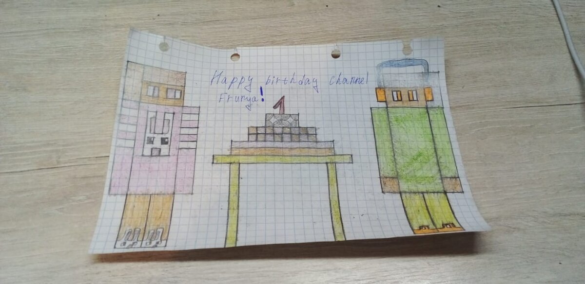 Привет! Сегодня моему каналу исполняется 1 год! И в честь этого праздника я нарисовала вам арт. Смотрите: Почему бы и не вставить сюда этот торт? :D Кстати, можете поздравить канал в комментариях. ---------------------------------------------------------------------------------------- Вне сюжетная история ---------------------------------------------------------------------------------------- Фруня сидела за столом и работала на компьютере. Вдруг в дверь позвонили. Фруня открыла дверь. На пороге стояли её друзья. Маффин: -Фруня, поздравляю твой канал с днём рождения! Фруня: -Спасибо -Проходите Друзья вошли в квартиру Фруни. Фруня: -Можете помочь мне украсить квартиру к празднику? Просто у меня очень много дел! Маффин, Тросточка, Кристалл: -Конечно! Фруня: -Хм, пойду проверю почтовый ящик *Открывает почтовый ящик* Фруня: -Похоже, много у меня друзей Фруне прислали 15 писем. 14 из них были обычными, а 15 зацепило её. В нём говорилось: "Привет! Помнишь меня? Это я, Аметист! Я хочу встрет