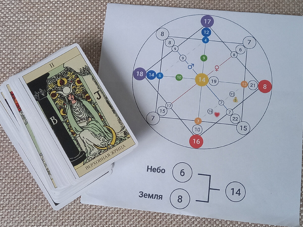 Рассмотрим на получившуюся схему, где спрятаны те самые говорящие цифры. За значение цифр отвечают старшие арканы Таро, согласно их порядковому номеру, всего их 22 аркана.