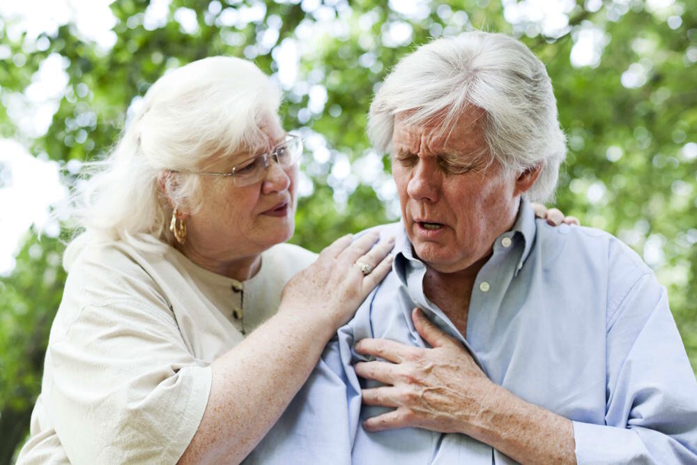 - Стенокардия: в грудной клетке возникает боль разного характера – от тупой и давящей до жгучей и острой. При этом боль отдаёт в лопатку или левую руку.