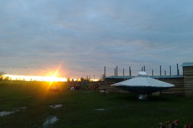 Изобретатель, скульптор и столяр Александр Мысливченко вместе с единомышленниками строит «летающую тарелку» - прямо у себя на участке, из обычных сосновых досок. Если объект не преодолеет земную гравитацию, смеется фермер, можно будет приспособить его под теплицу, а на территории подсобного хозяйства обустроить уфопарк.