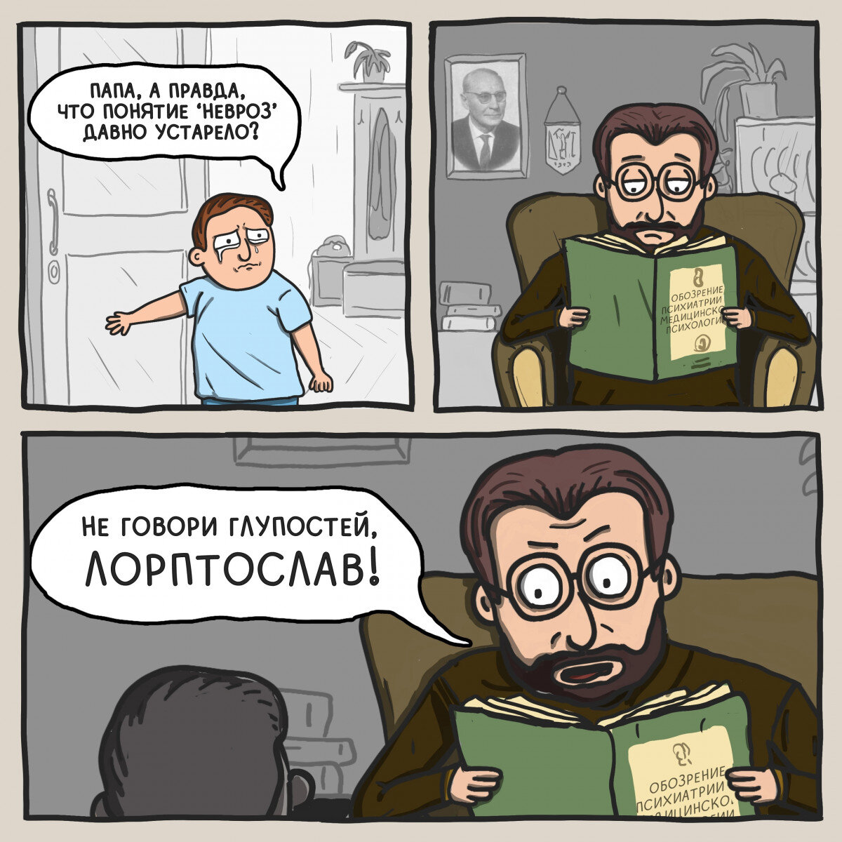 Но вот незадача, из клинической реальности невроз никуда не исчез. Мы все так же его видим. И не шлифуем его нынче модным КПТ. А помогаем старым добрым ЛОРПТ. И мастерски ведем двойную бухгалтерию (4 пишем, 2 - в уме).