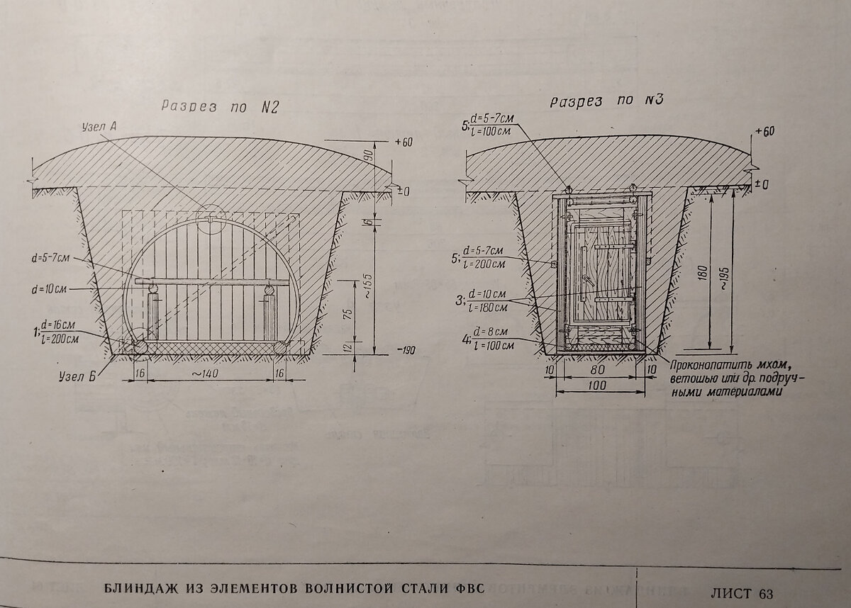 Конструкция блиндажа запроектирована с использованием» волнистой стали ФВС в сочетании с деревом и состоит: