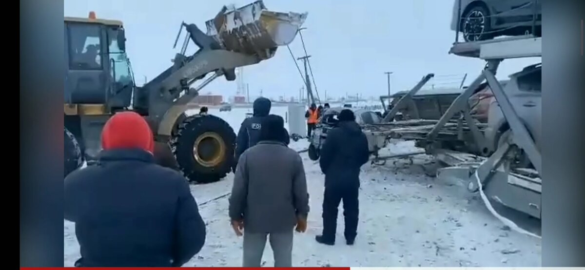Поезд столкнулся с автовозом на железнодорожном переезде на западе Казахстана, сообщает Tengrinews. Момент столкновения и последствия аварии попали на видео. Инцидент произошел в Актюбинской области на железнодорожном переезде трассы Самара — Шымкент. На записи видно, как автовоз остановился на путях, после чего в него врезался поезд. Грузовик получил сильные повреждения, как и автомобили, которые он перевозил. По предварительным данным, на переезде водитель автовоза проехал на запрещающий сигнал светофора. В результате ДТП мужчина скончался в автомобиле скорой помощи.