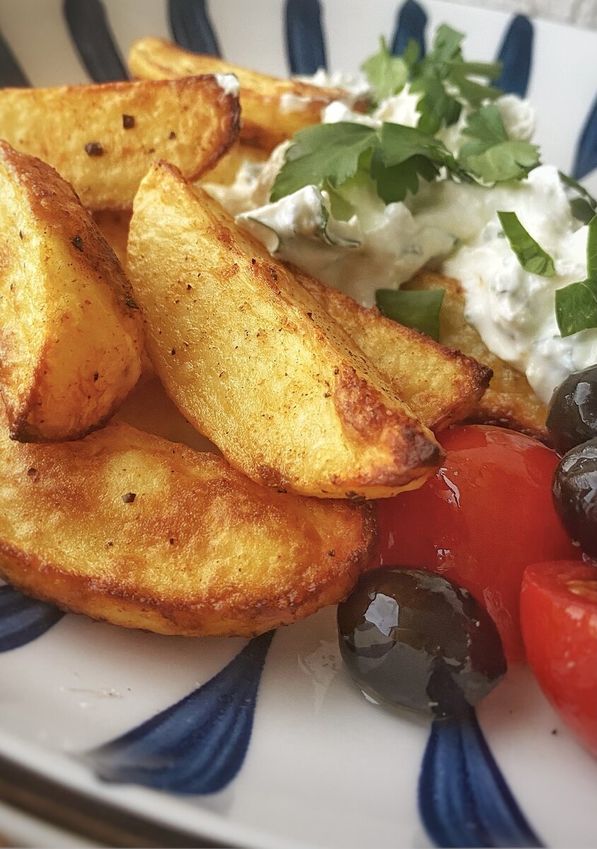 Картофель по-деревенски с соусом из брынзы