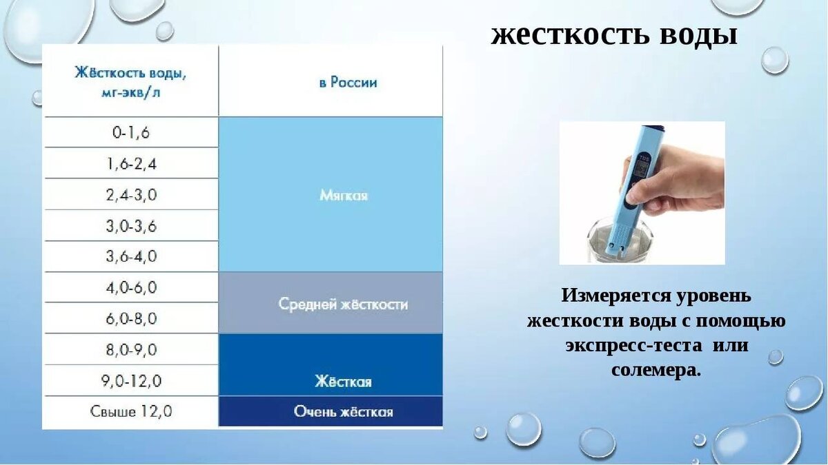 Карбонатная жесткость воды - это наличие в водеуровня pH>8,3 , а так же наличие гидрокарбонатов и карбонатов кальция и магния. Но чаще встречается карбонатная. Жесткая вода в бассейне увеличивает значение pH, это затрудняет уход за бассейном. Так как вода для бассейна берется чаще всего из скважин или открытых водоёмов. Из-за этого в воде по умолчанию содержаться соли кальция, магния и другие. Соли в свою очередь участвуют в химических процессах, следовательно выпадают в осадок. Корректировка уровня жесткости воды необходима для сохранения в бассейне цементных швов и металлических деталей. Жесткость воды выражается в градусах (°dH) жесткости. Если этот показатель находится в диапазоне от 8 до 12, это средний уровень. При более низких значениях уровень считается мягким (°dH=8) и очень мягким(°dH =4), при более высоких – жестким (°dH от 18до 30) и исключительно жестким (°dH > 30). Жесткость воды может быть: 1. Карбонатной; 2. Некарбонатной; 3. Общей. Проблему с карбонатной жесткостью мо